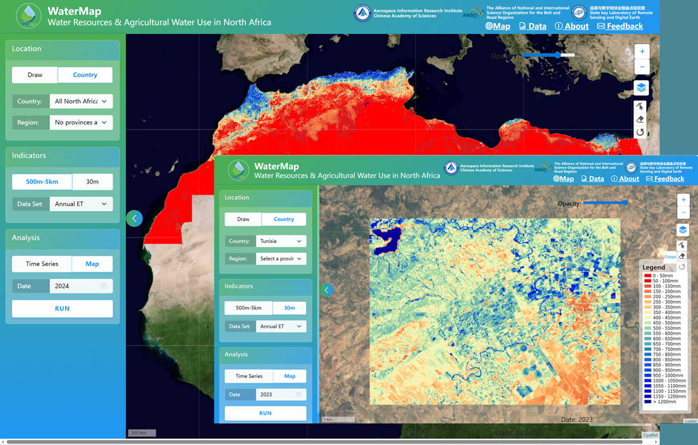 The WaterMap N-Africa Platform is a core achievement of the ANSO joint research project "Monitoring and Assessment of Water Resources and Agricultural Water Use in North Africa". Built on satellite remote sensing and cloud computing technologies, it provides an integrated tool for water resource monitoring and decision support. Led by Prof. JIA Li, the project involves the joint participation of multiple scientific institutions across North Africa.