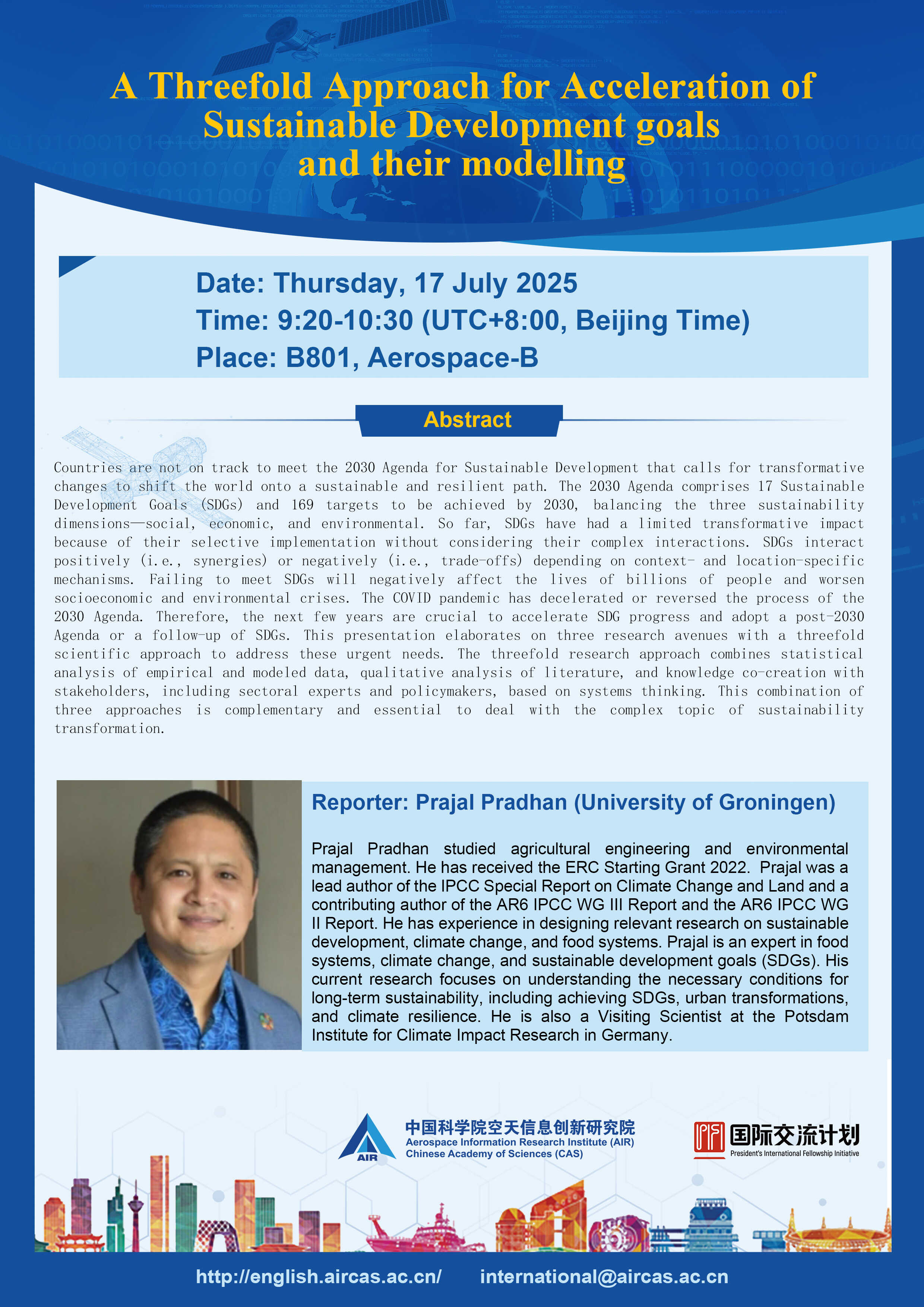 PIFI Seminar: A Threefold Approach for Acceleration of Sustainable Development Goals and Their Modelling